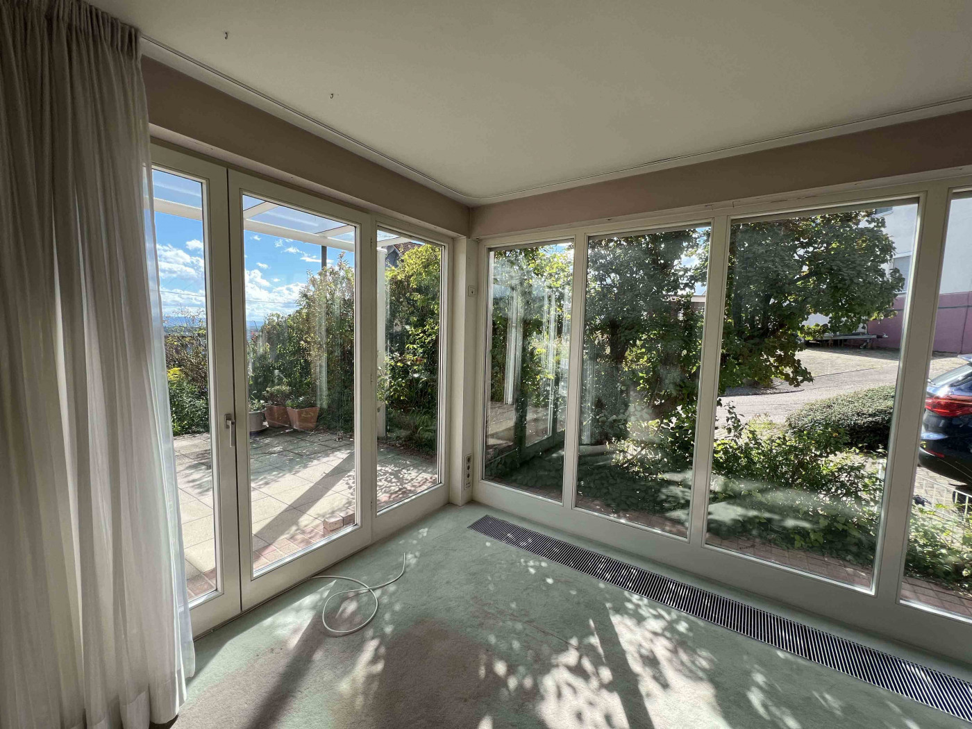 Durch die Hanglage des exklusiven Objektes hat man einen grandiosen Blick bis zur schwäbischen Alb.