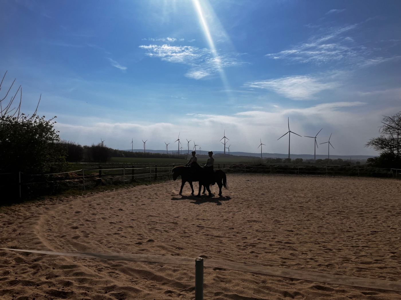 Der Ort liegt schön am Rande des Salzgitter Höhenzuges zwischen Wäldern und Feldern. Von der Koppel aus eröffnet sich ein weiter Blick über die sanften Hügel des Harzes bis hin zum Brocken.