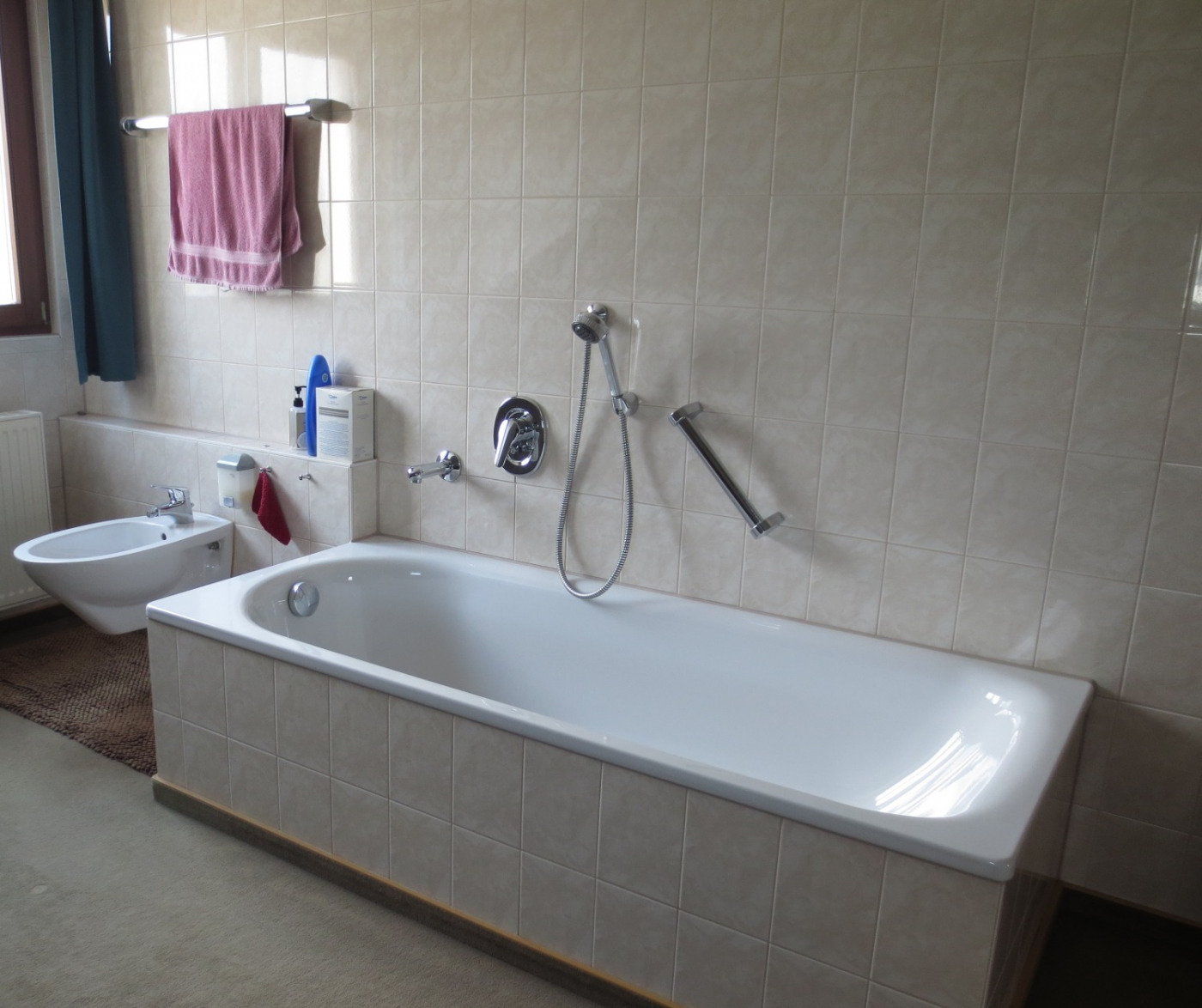 - Ausstattung des Bades Badewanne, Fenster, Dusche